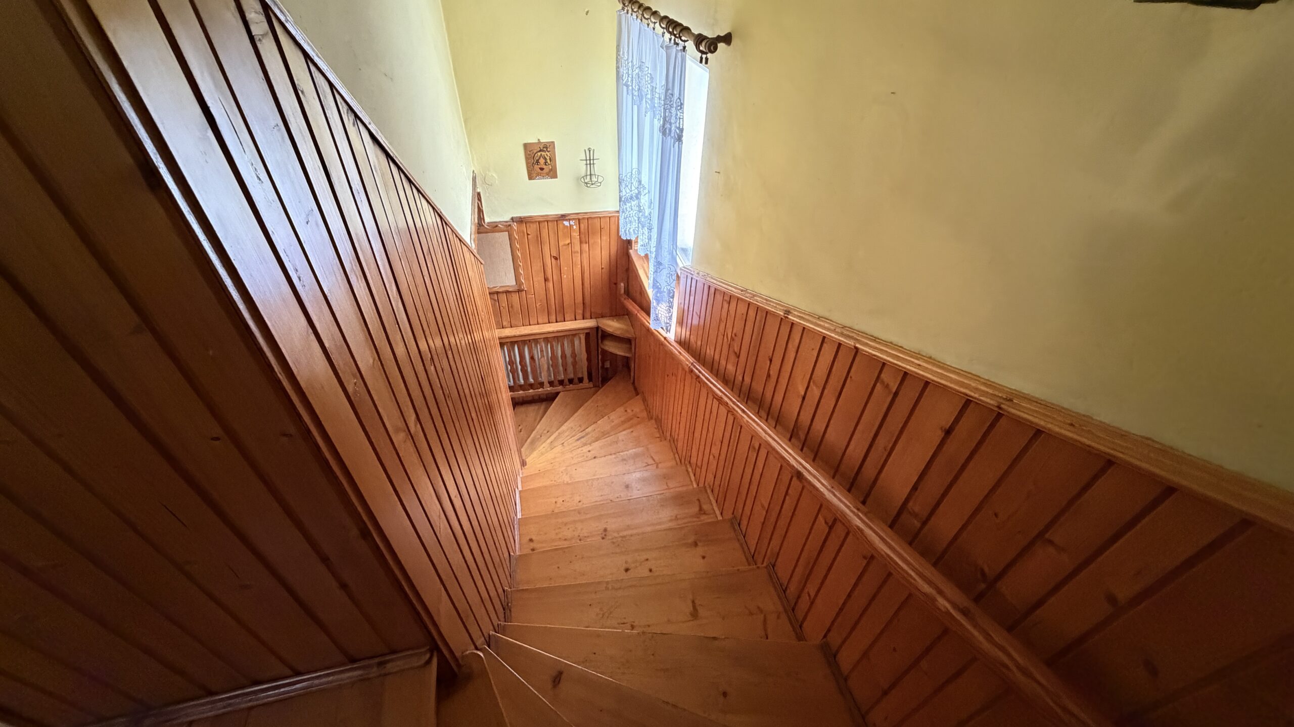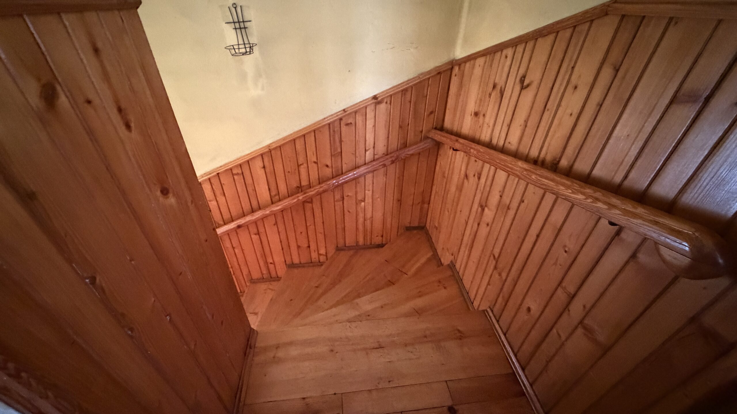 Klatka schodowa z drewnianymi schodami.