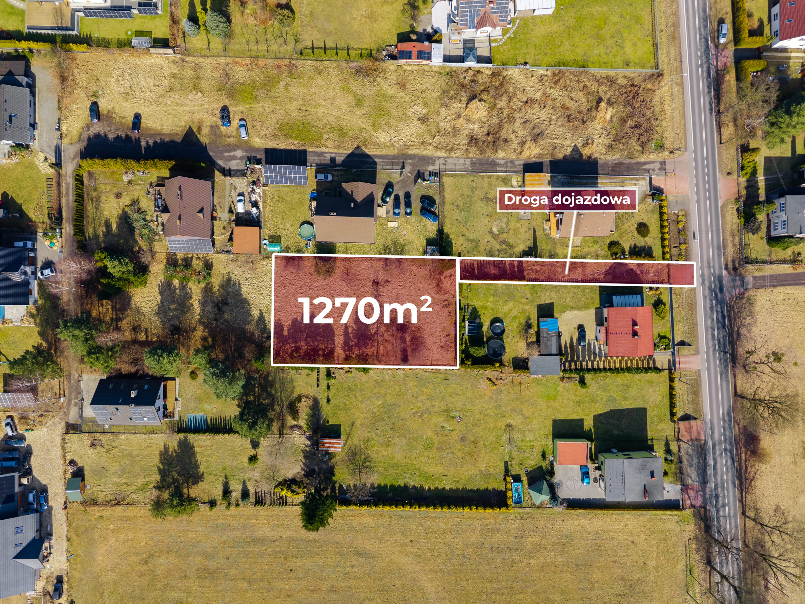 Dojazd do nieruchomości odbywa się drogą prywatną w której zapewniony zostanie udział.