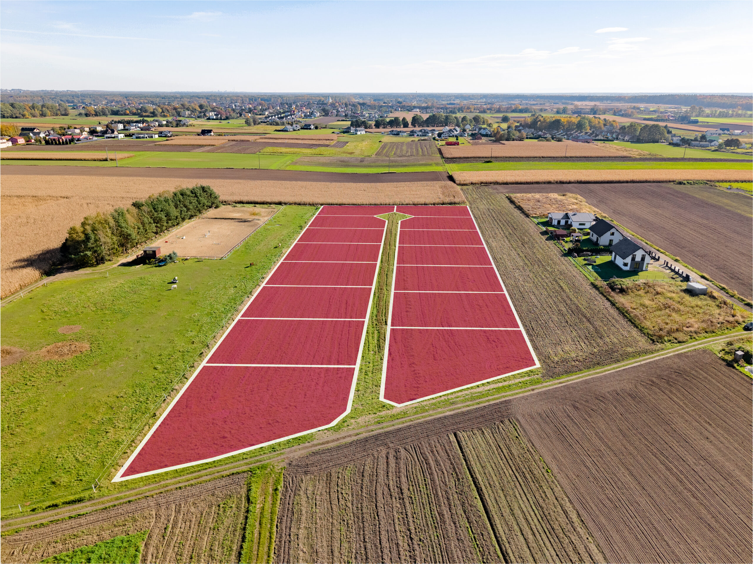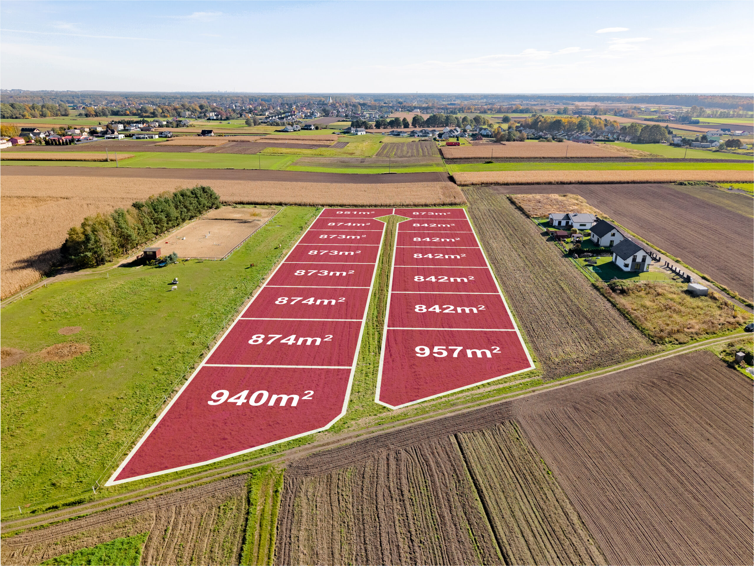 Działki polecamy tym klientom którzy szukają ciszy i spokoju. W sąsiedztwie dominuje niska zabudowa jednorodzinna. W kilka minut dojedziemy do ważniejszych punktów takich jak szkoła, przedszkole, żłobek, sklepy itp. Działki graniczną z stadniną koni co dodatkowo jest atrakcją dla osób jeżdżących konno. Bliskość lasu czy ścieżek rowerowych jest z pewnością dużym atutem.