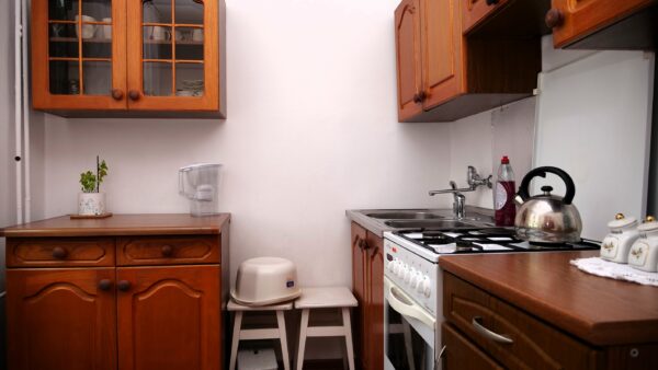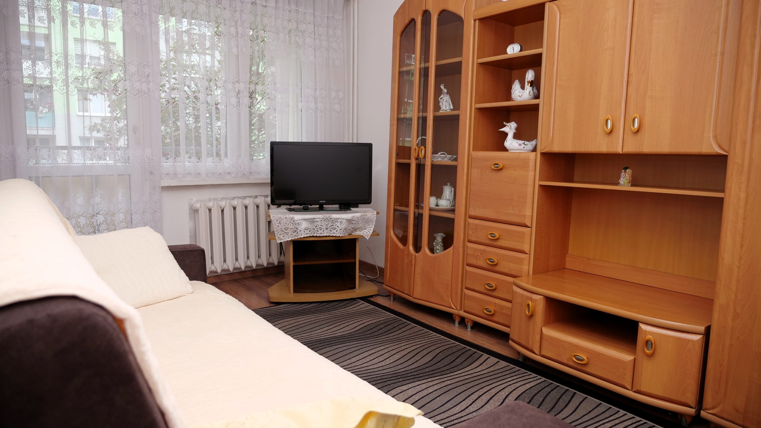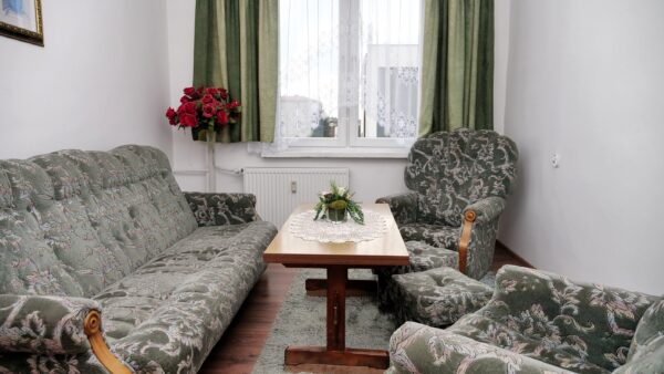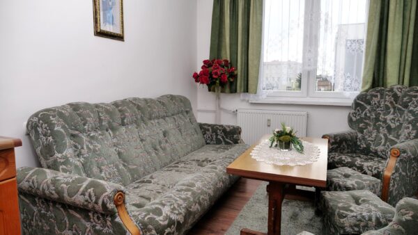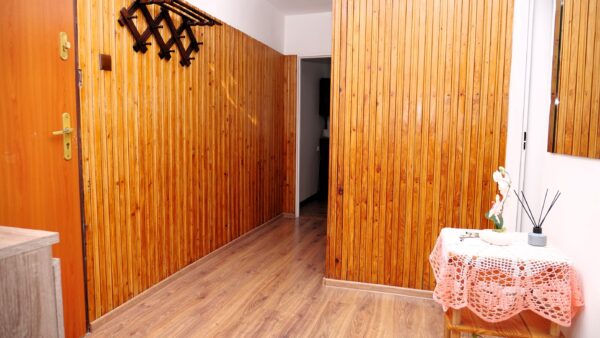 Składa się z przedpokoju, trzech pokoi, kuchni, łazienki z WC.